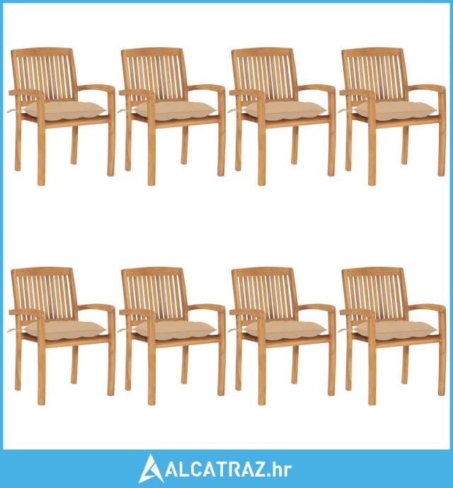 Složive vrtne stolice s jastucima 8 kom od masivne tikovine - NOVO