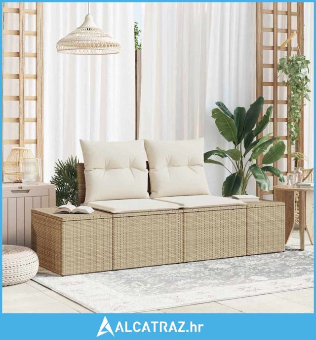 Sofas za vrt s dvije sjedeće jedinice i jastučićima Bež poliratana - N
