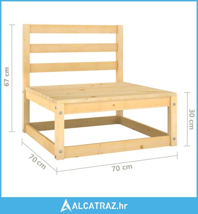 Ova srednja sofa napravljena je od masivne borovine, zbog čega je čvrsta i stabilna. Jastuci daju dodatnu udobnost. Uz to, ova drvena srednja sofa ima modularni dizajn, što je čini potpuno fleksibilnom i jednostavnom za pomicanje u skladu bilo s kojim uređenjem. Možete je kombinirati s drugim modularnim segmentima dostupnima u padajućem izborniku kako biste stvorili vlastiti raspored vrtne garniture!