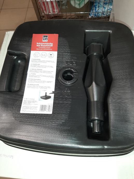 Potpuno novi i nekorišteni stalak za suncobran..crne boje..( dostupno i u bjeloj boji ) ..punjiv radi stabilnosti sa vodom ili pjeskom..