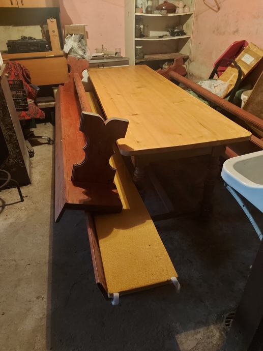 Prodajemo očuvani stol s tri klupice sa slike. Dimenzije stola su cca. 220x80 cm.