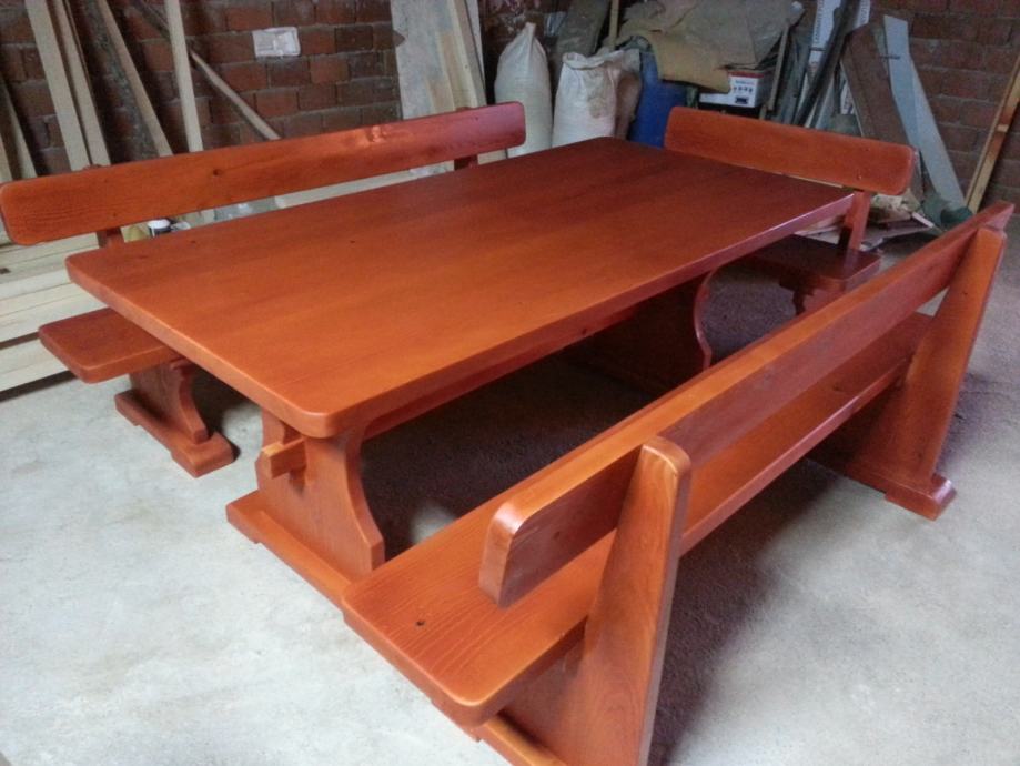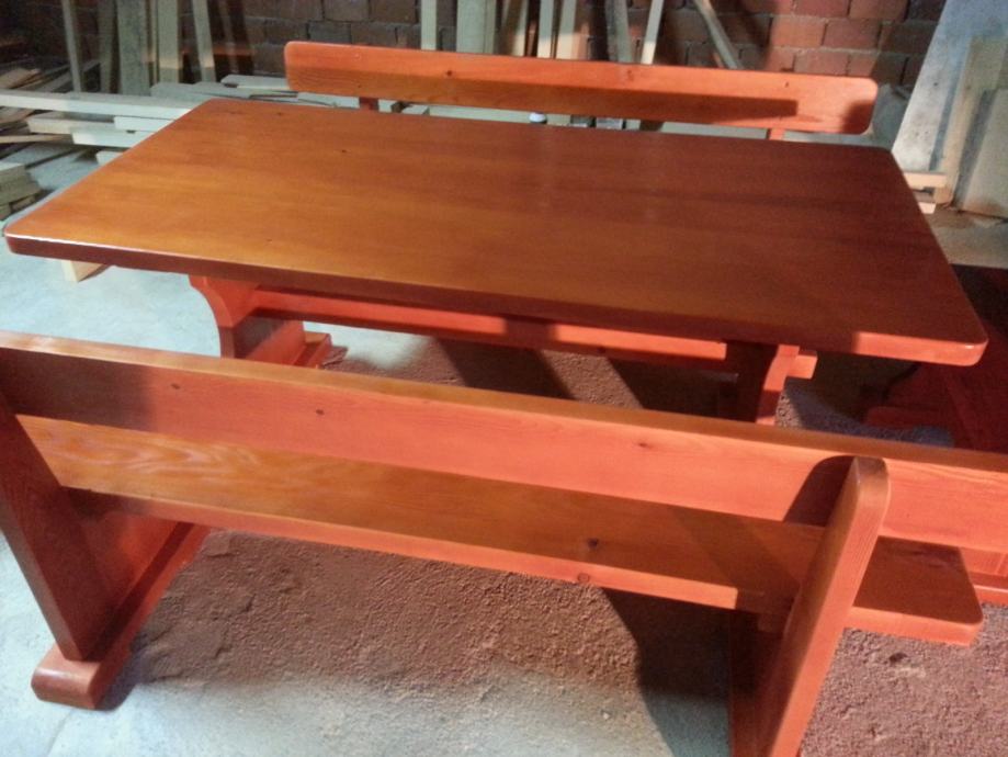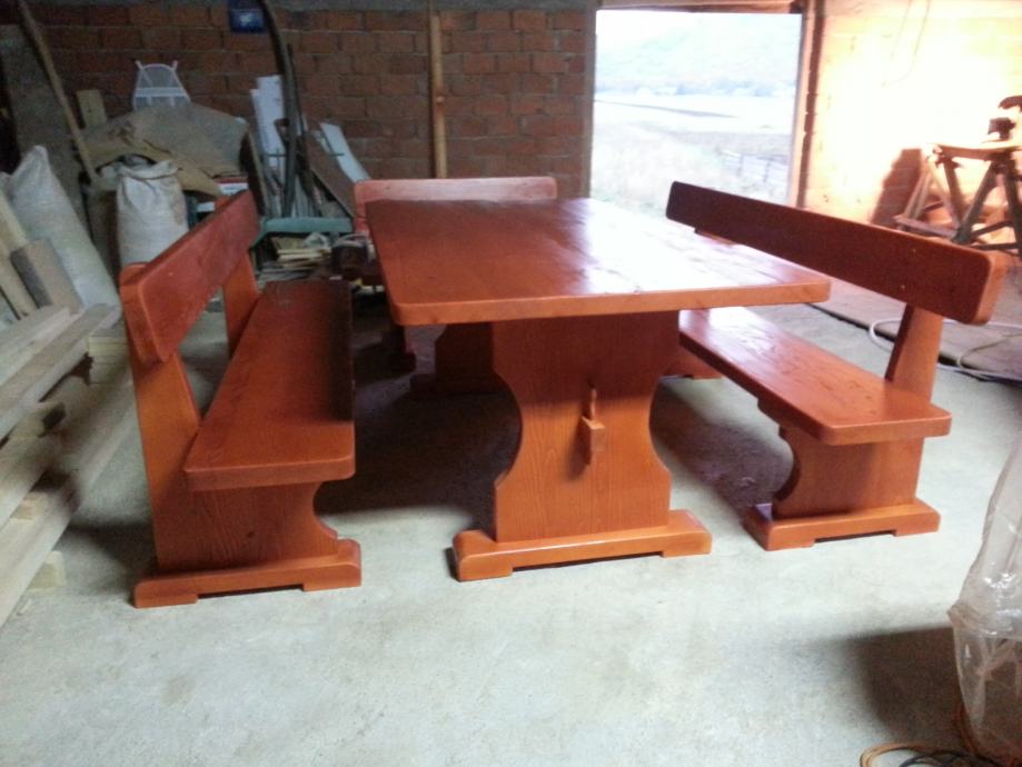 Širina plohe stola 1 m, širina plohe klupa 40 cm, debljina 48 mm.