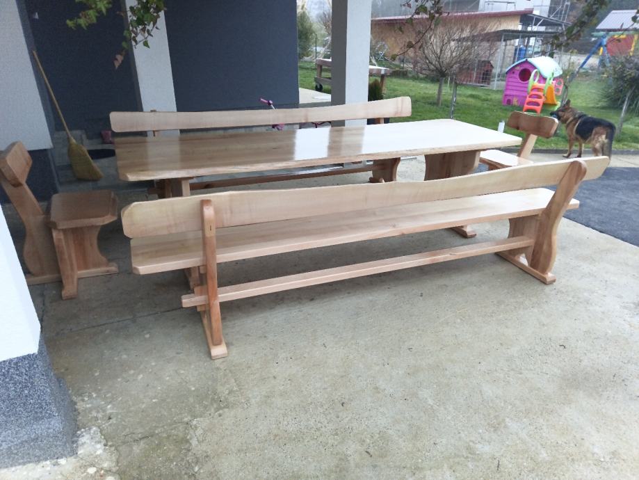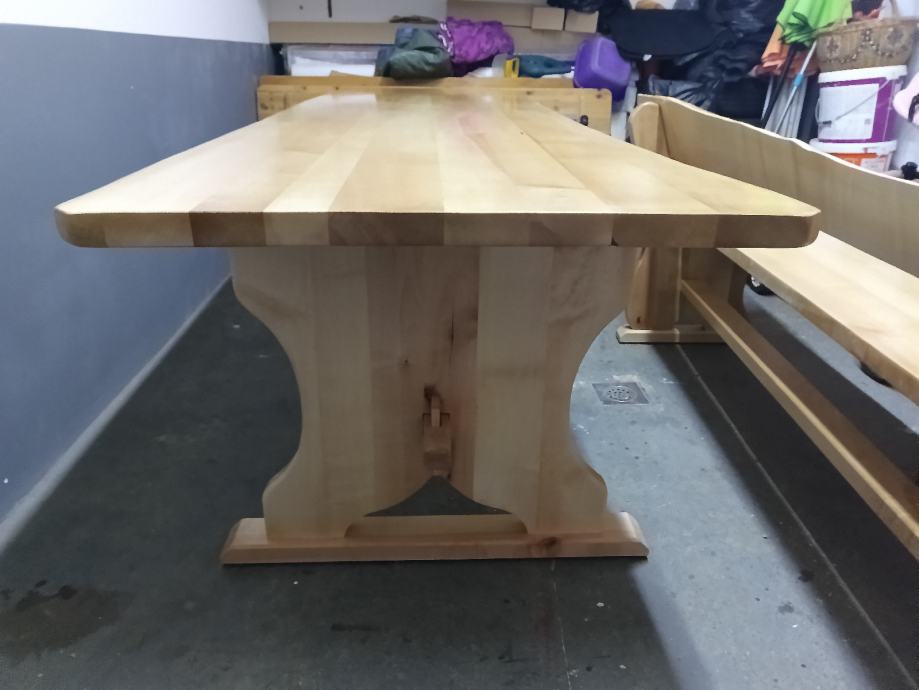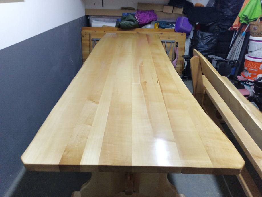 Lakirano bezbojnom lazurom, dimenzije stola 290x90cm