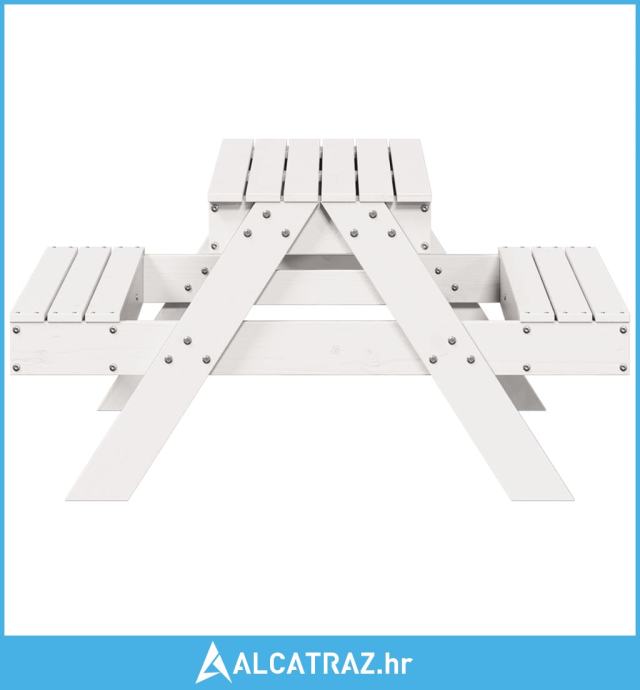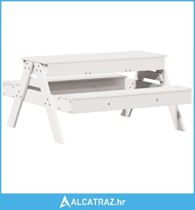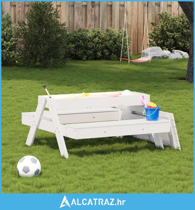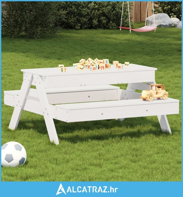 Stol za piknik s pješčanikom za djecu bijeli masivna borovina - NOVO