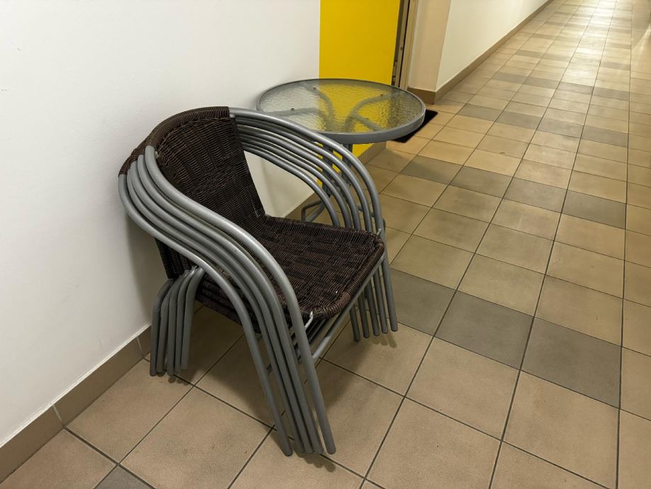 Stolić i 6 stolica za balkon ili vrt, u dobrom stanju, prodaje se u setu, gratis sjedalice. Jedna stolica ima malo otpleten rub (na slici), ostale su ok.