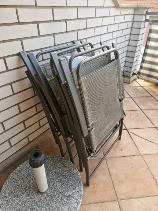 Prodajem komplet za terasu ili vrt, stol, 4 stolice i veliki ne korišteni antracit suncobran