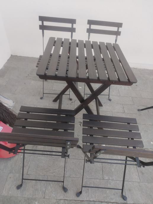 Prodajem stol i tri stolice za balkon/ vrt