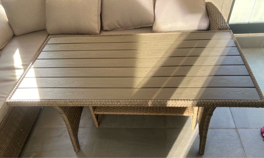 Ploca stola izradena je od izdrzljivog polywooda (plastika koja imitira drvene ploce), lako je za ciscenje i otporno na ogrebotine.