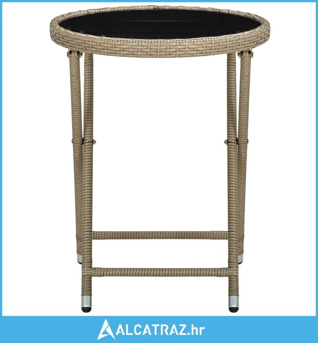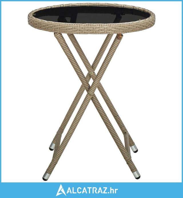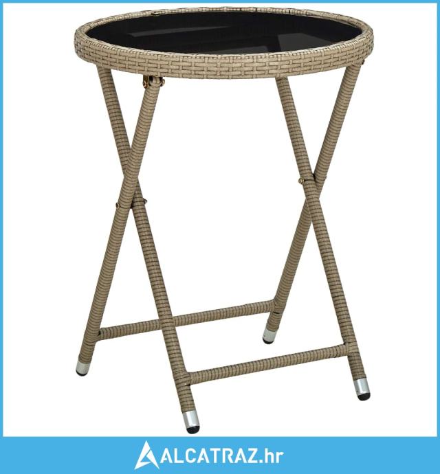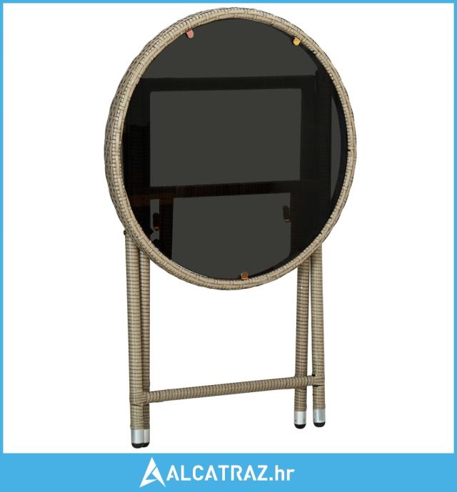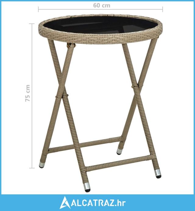 Ovaj vanjski stolić, napravljen od PE ratana otpornog na vremenske utjecaje, lako se čisti, izdržljiv je i prikladan za svakodnevnu upotrebu. Čelični okvir obložen prahom čini ga vrlo čvrstim i izdržljivim. Čvrsta stolna ploča izrađena je od kaljenog stakla. Lako se čisti vlažnom krpom i idealna je za držanje pića i hrane na dohvat ruke. Zahvaljujući sklopivom dizajnu, stolić za kavu može se lako sklopiti kako bi se uštedio prostor kad se ne upotrebljava.