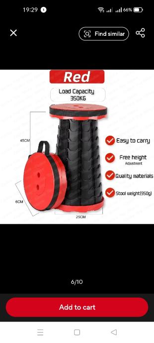 Nova višenamjenska podesiva stolica u crvenoj-crnoj boji. Stolica je nova, nekorištena i izrađena je od čvrstih plastičnih segmenata, koji se mogu podešavati po visini. Sklopljena se može nositi na ramenu. Zbog svog specifičnog patenta malih lamela podnosi veliku težinu. Može se koristiti gdje god poželite, pa i kao tabure u dnevnom boravku. Cijena 20€. Molim zvati na mob. 091/2356157