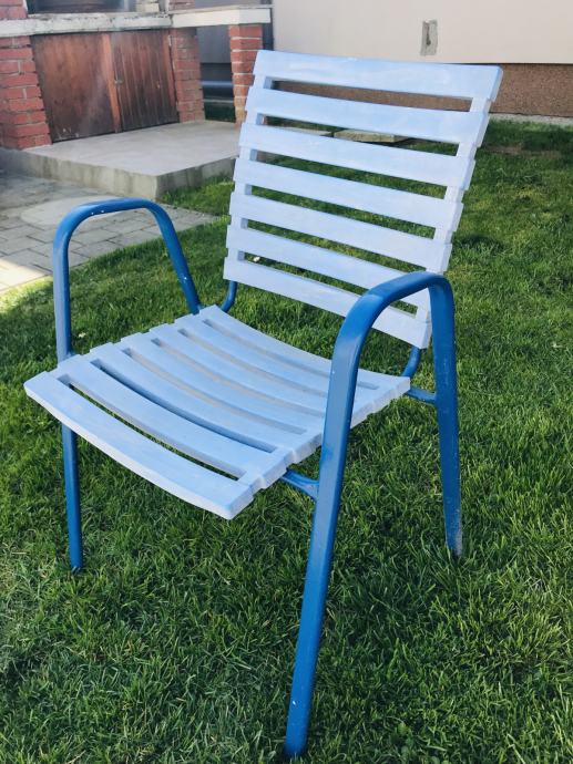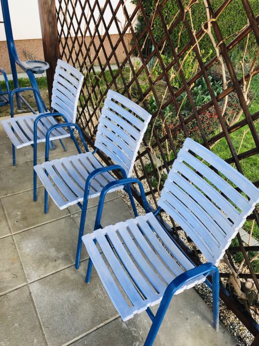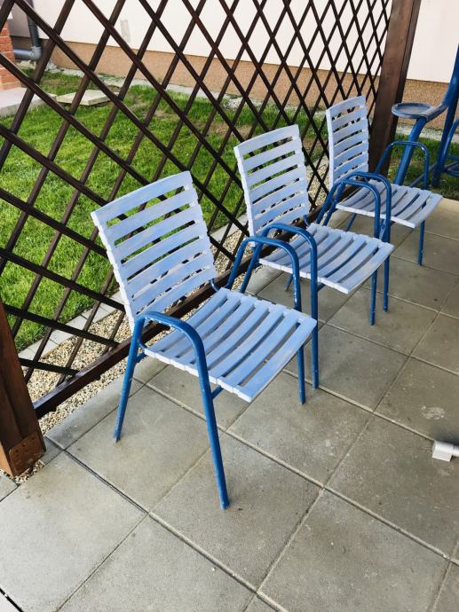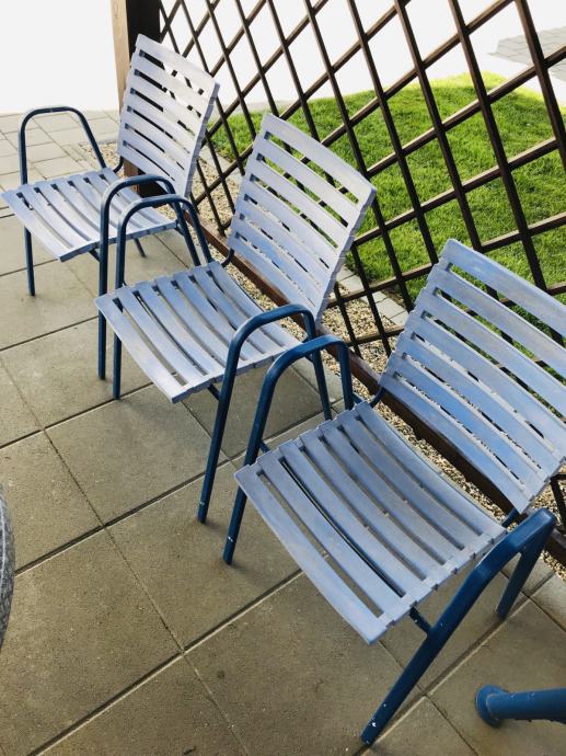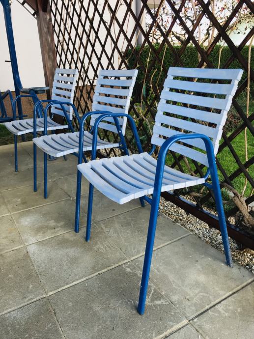 Prodajem metalne stolice za terasu s plastičnim sjedištem, plave boje, rabljene, u dobrom stanju, 6 komada, 75kn/kom