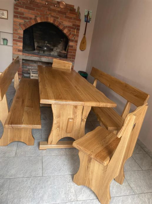 Prodaju se hrastovi stolovi i klupe sa naslonom.