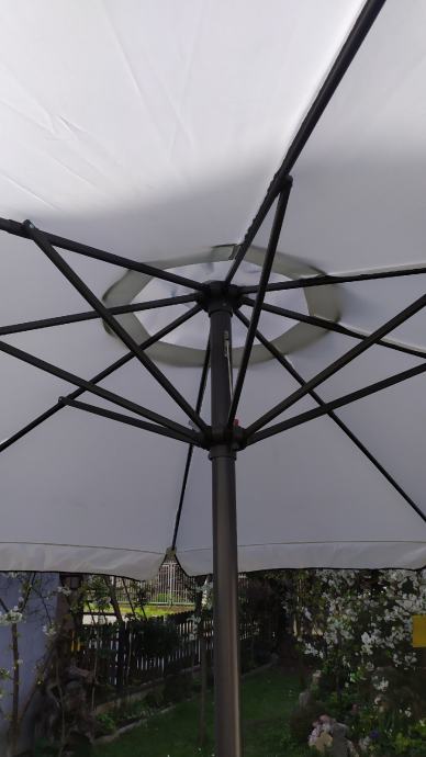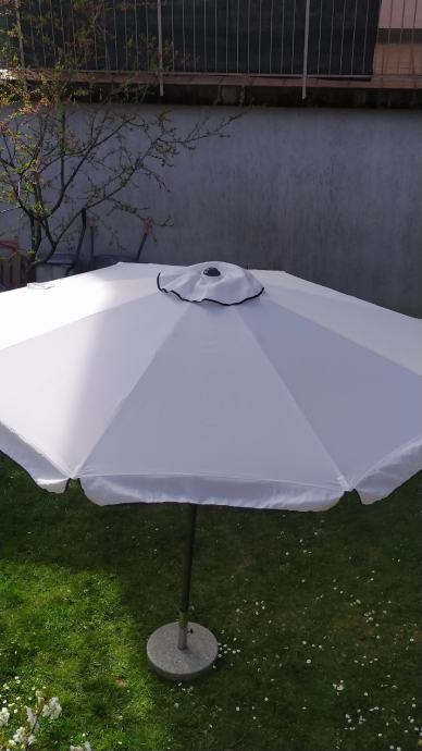 Prodajem suncobran raspona 4m,pokrov je od vodonepropusnog platna,uv zaštita od sunca,promjer cijevi je 48mm, visina 243cm,otvaranje/zatvaranje sa mehanizmom na ručkicu