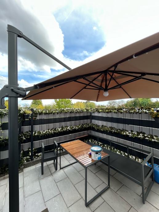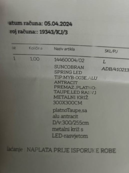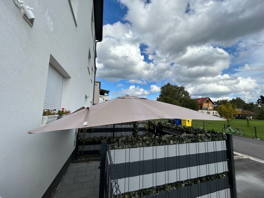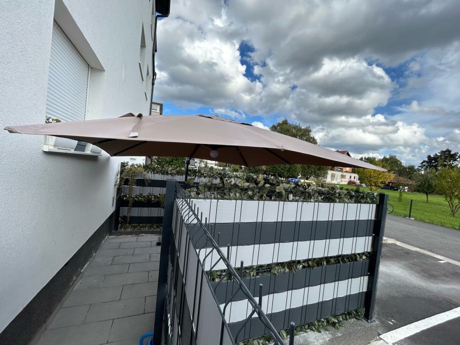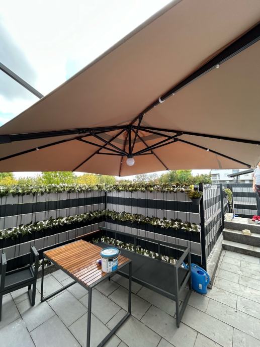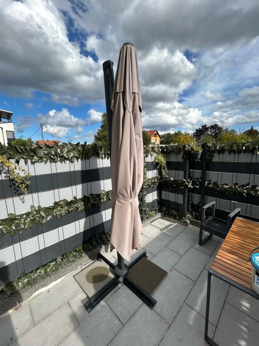 Prodajem navedeni suncobran, kupljen u proljeće 2024. Suncobran se prodaje radi postavljanja fiksne nadstrešnice.