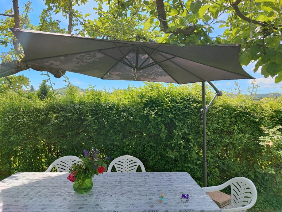 Prodajem suncobran Toscana, promjer 300 cm sa križnim stalkom bez kamenih nosača. Moguća dostava unutar ZG.