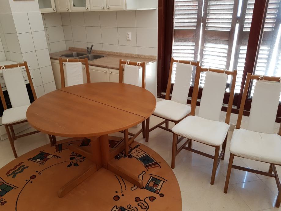 PREKRASAN OKRUGLI STOL NA RAZVLACENJE + 6 HRASTOVIH STOLICA + GRATIS TEPIH ZA SAMO 339 e..- 47 eura komad ukljucujuci I stol.
