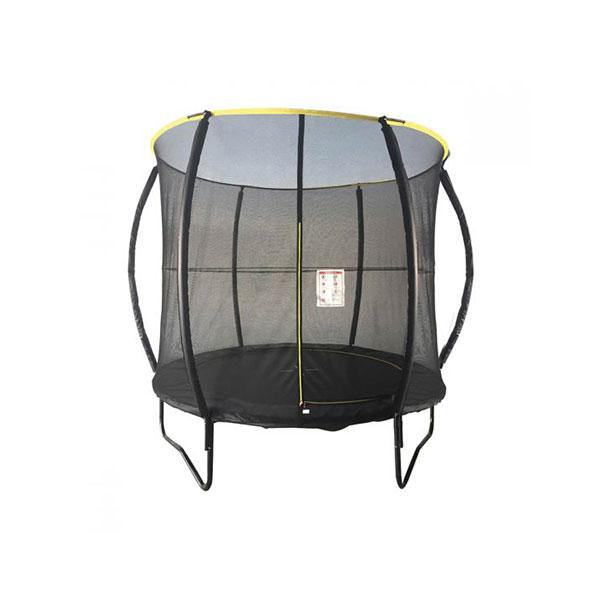 Trampolin nema opruge, već je središnji dio za skakanje izrađen od mrežastog elastičnog materijala (PP), crne boje sa žutim rubom.