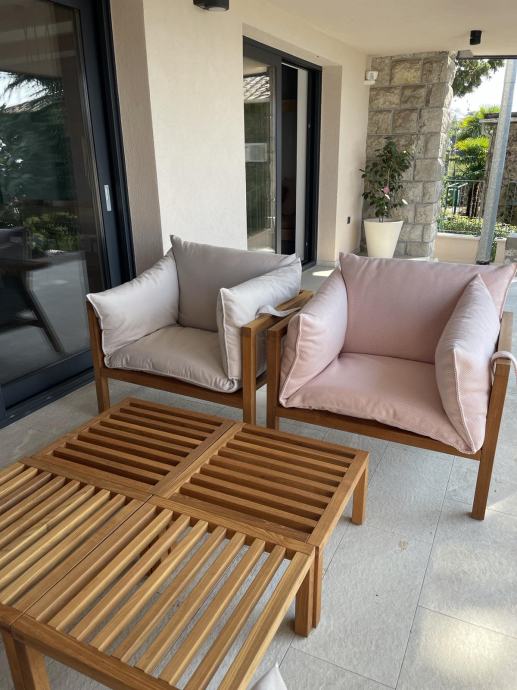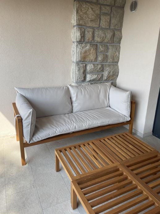 - kolekcija: 1 dvosjed (sa pripadajućim jastukom) + 2 fotelje (sa pripadajućim jastucima) + 4 stolića