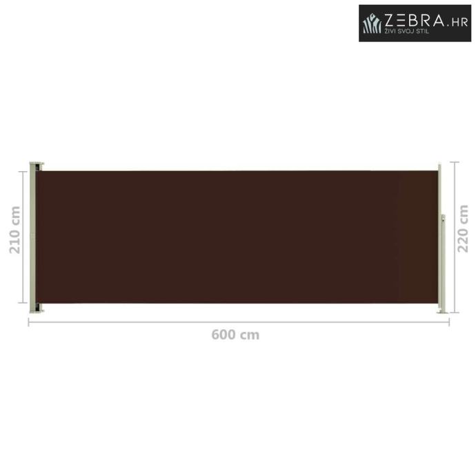 Uvlačiva bočna tenda za terasu 220 x 600 cm smeđa - Smeđa 220 x 600 cm
