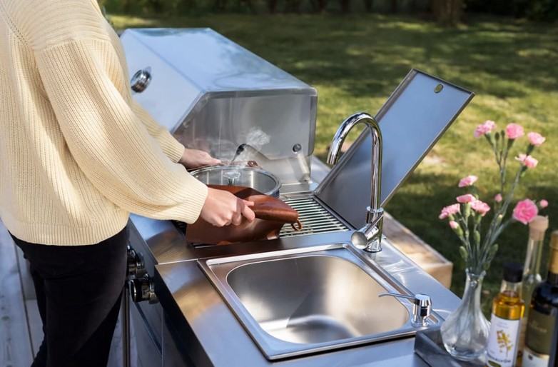 Uživajte u kuhanju u ultramodernoj, potpuno opremljenoj vanjskoj kuhinji. Bočni plamenik može se kombinirati sa samostojećim plinskim roštiljem ili drugim modulima iz Myoutdoorkitchen.
