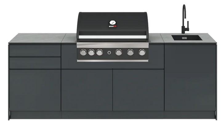 Kitchenbox set 4 standard antracit je vanjska kuhinja napravljena za sve vanjske uvjete. Naše vanjske kuhinje otporne na vremenske uvjete izvrstan su izbor za ljude koji žele uživati u roštiljanju na otvorenom tijekom cijele godine. Kitchenbox vanjske kuhinje su dizajnirane i proizvedene da izdrže u različitim vremenskim uvjetima kao što su kiša, snijeg i izravna sunčeva svjetlost. Naše vanjske kuhinje su opremljene su: praktičnim policama i ladicama ili ormarićima koji omogućuju držanje kuhinjskog pribora, posuđa ili