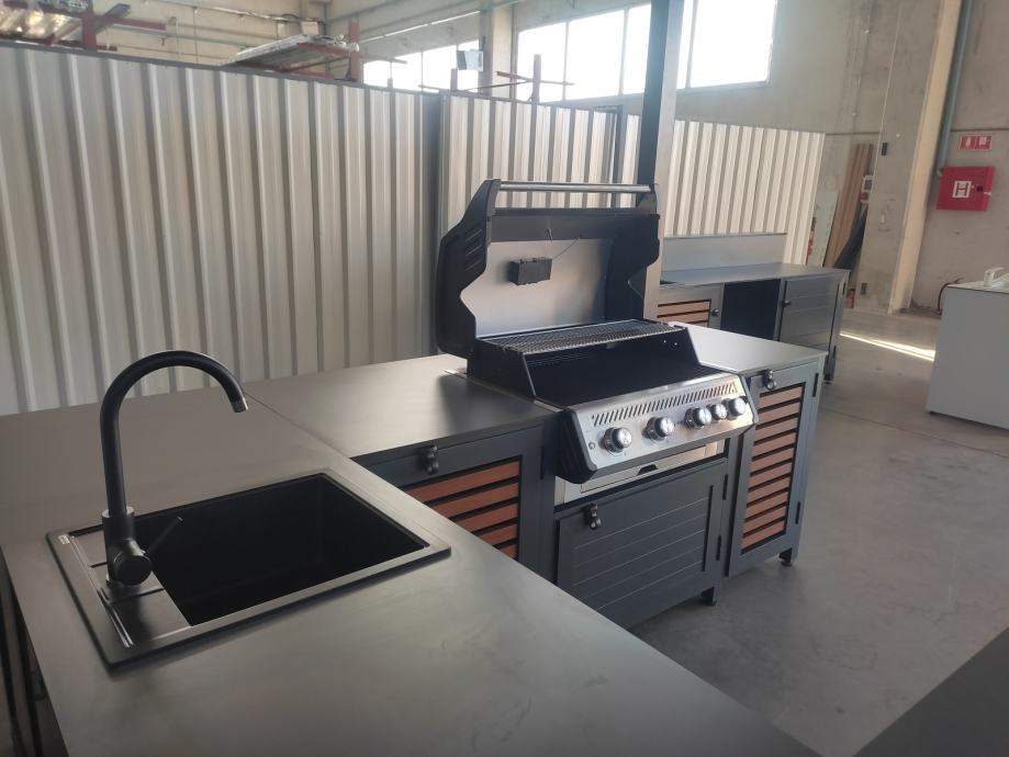 Uživajte u pripremi obroka u ljetnoj kuhinji na otvorenom. Profil tehnika ljetne kuhinje su napravljene od plastificiranog aluminija otpornog na sve vremenske uvijete.