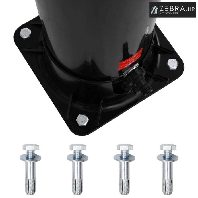 Uključena je i slavina koja zadovoljava vaše druge potrebe za vodom. Također smo priložili 4 vijka za čvrsto i stabilno pričvršćivanje baze tuša na bilo koju ravnu čvrstu površinu. Ovaj solarni tuš osmišljen je kako bi se uklopio u vaš vrt ili bazen uz uredan i otmjen izgled.