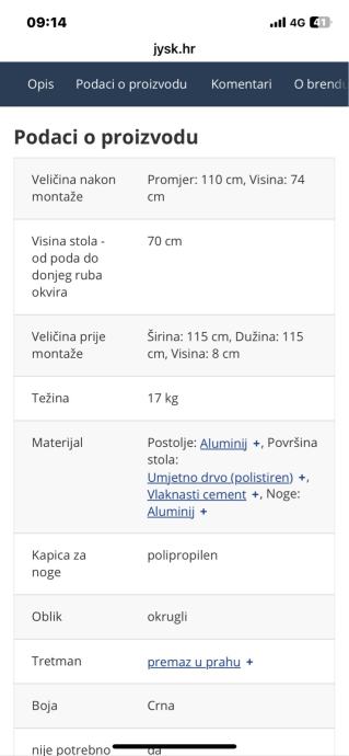 Prodaje se vanjski stol kupljen u Jysk-u. Obzirom na manjak prostora prodajem ga. Nema tragova koristenja po njemu.