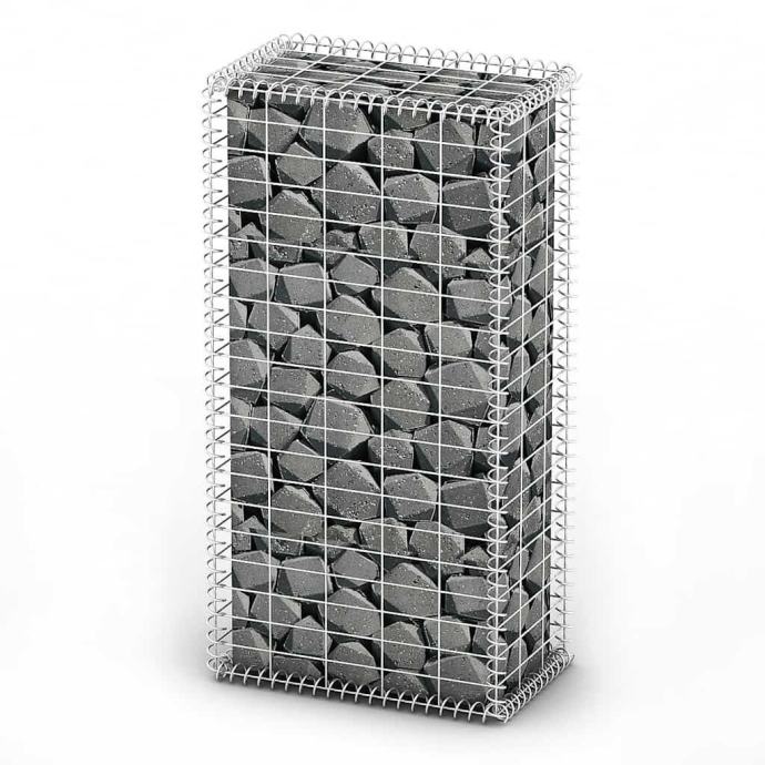 Izrađen od pocinčanog čelika, otpornog na hrđu i vremenske utjecaje, gabion je vrlo stabilan i izdržljiv za godine korištenja. Mrežasta rešetka oblikovana je zavarivanjem poprečnih i uzdužnih žica na svakom sjecištu. Uz promjer žice od 3,5 mm, gabion je stabilan i čvrst.