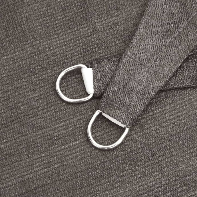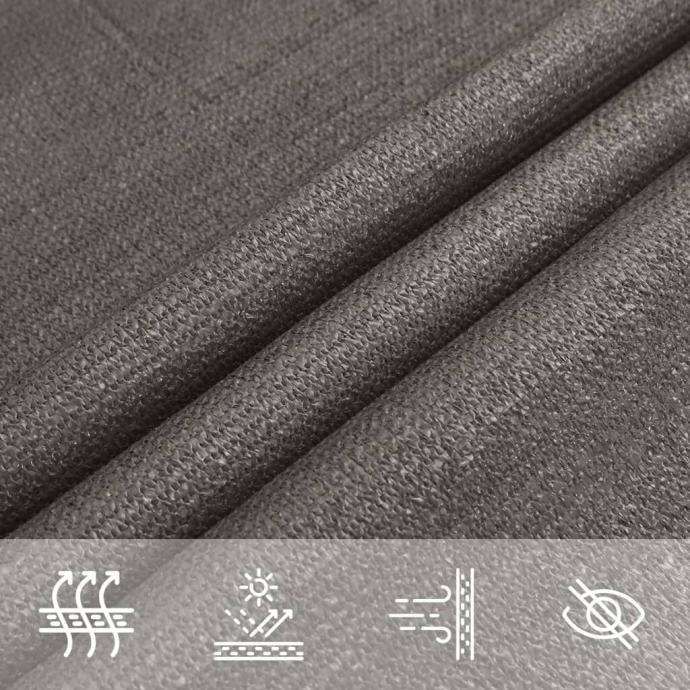 Sunčevo jedro, izrađeno od 100% HDPE (polietilen visoke gustoće), štiti vas od izravnog sunčevog svjetla, omogućuje dovoljno protoka zraka i propusno je za vodu. HDPE je posebno obrađen, pa je otporan na plijesan i UV zrake. Sjenilo je jednostavno za sastavljanje pomoću pričvrsnih elemenata od nehrđajućeg čelika u svakom kutu i priloženih užadi.