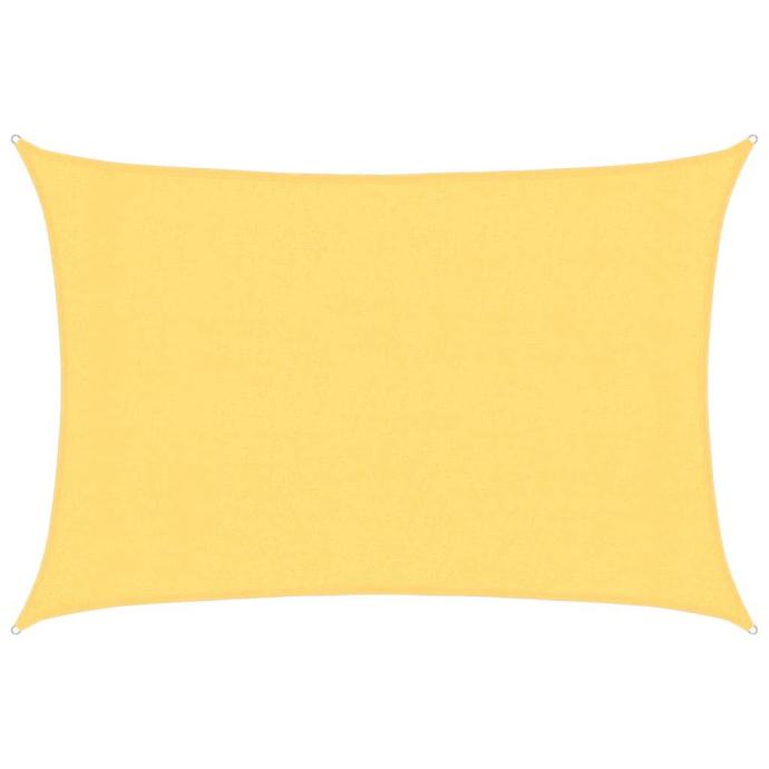 Sunčevo jedro, izrađeno od 100% HDPE (polietilen visoke gustoće), štiti vas od izravnog sunčevog svjetla, omogućuje dovoljno protoka zraka i propusno je za vodu. HDPE je posebno obrađen, pa je otporan na plijesan i UV zrake. Sjenilo je jednostavno za sastavljanje pomoću pričvrsnih elemenata od nehrđajućeg čelika u svakom kutu i priloženih užadi.