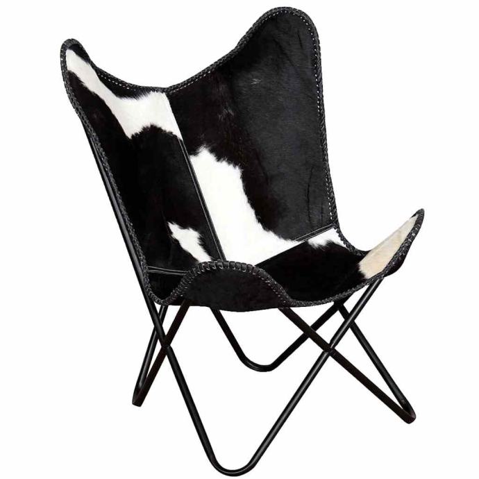 vidaXL Leptir-stolica crno-bijela od prave kravlje kože(243729)