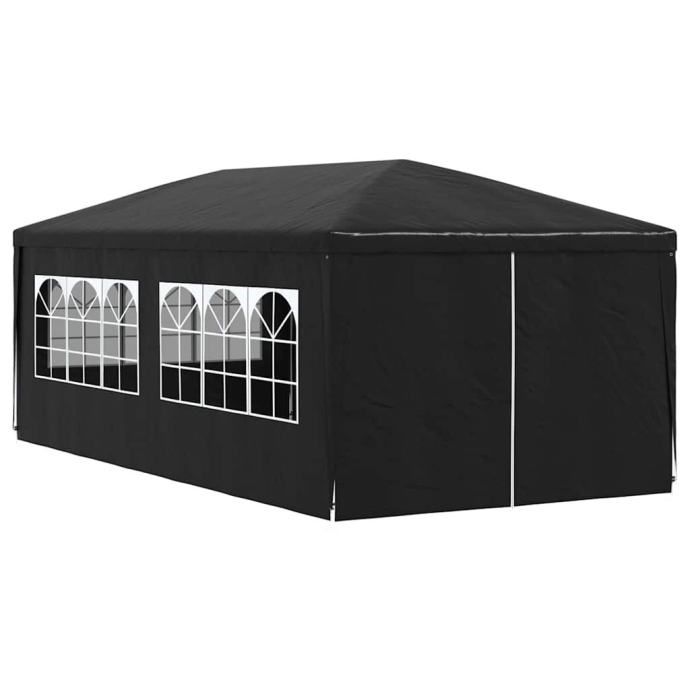 Vrtni šator izrađen je od polietilenskog materijala otpornog na UV zračenje i vodu, stoga je vrlo praktičan za vanjsku uporabu. Okvir je izrađen od čelika otpornog na hrđu, što čini vanjsku nadstrešnicu stabilnom i izdržljivom. Šator za zabave ima bočne panele, od kojih svaki sadrži ukrasne prozore te 1 panel s vratima s patentnim zatvaračem za lakši ulaz. Vrtna sjenica lako se sastavlja.