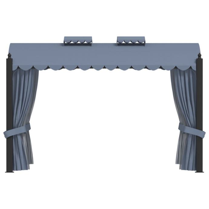 Krov napravljen od tkanine Oxford s oblogom od PA-a, štiti vas od odsjaja i štetnih UV zraka izravne sunčeve svjetlosti. Sjenica je čvrsto izrađena od snažnog aluminija i čelika, stoga je otporna na hrđu i vrlo stabilna. Paviljon se isporučuje s 4 bočna zastora, koji se mogu povući u lošim vremenskim uvjetima. Mrežasti zastori također su uključeni kako bi držali podalje kukce i osigurali dobru cirkulaciju zraka. Pričvršćivači na čičak također su uključeni za jednostavno pričvršćivanje.