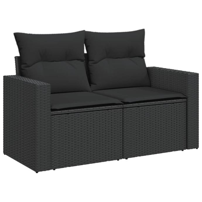 vidaXL Vrtna sofa s jastucima za 2 osobe, crna, poli ratan(365989)
