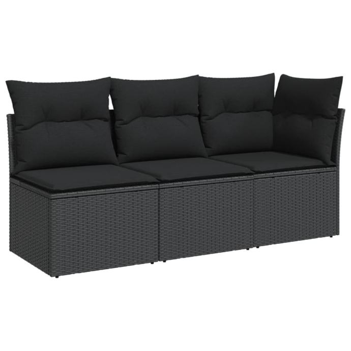 vidaXL Vrtna sofa s jastucima za 3 osobe, crna, poliratan(365987)
