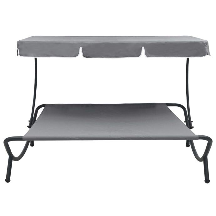 Napravljen od tkanine oxford otporne na vremenske utjecaje, ležaj za sunčanje može se upotrebljavati na otvorenom tijekom cijele godine. Okviri od čelika obloženog prahom pružaju veliku stabilnost i osigurava ležaju za sunčanje dug vijek trajanja i izvrsnu izdržljivost. Krov napravljen od vodoodbojnog poliestera, nesumnjivo će pružiti najveću moguću udobnost tijekom ležanja. Ležaj za sunčanje za dvije osobe pruža vam hlad zahvaljujući svom velikom krovu. Sastavljanje je jednostavno.