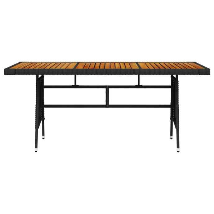 Uz ovaj kuhinjski stol, možete uživati u obroku pod zvijezdama ili na sunčevoj svjetlosti. Stol za terasu sadrži stolnu ploču od masivnog bagremovog drva i okvir od čelika obloženog prahom, zbog čega je čvrst i izdržljiv. Ovaj vanjski stol prekriven je ratanom od PE-a, što ga čini otpornim na vremenske utjecaje. Zahvaljujući laganoj konstrukciji od PE ratana, možete ga jednostavno pomicati.