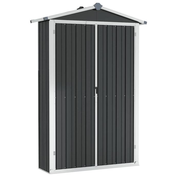 Ova kućica za pohranu opremljena je otvorima koji omogućuju ventilaciju kako bi se smanjilo nakupljanje vlage i mirisa u kućici. Police nude dovoljno prostora za čuvanje vaših potrepština organiziranima. Uz to, ovo vanjsko spremište napravljeno od pocinčanog čelika zahtijeva minimalno održavanje i vrlo je izdržljivo. Dvostruka vrata s prednje strane omogućuju jednostavan ulaz i izlaz. Kišnica se automatski odvodi s krova zahvaljujući njegovom kosom dizajnu.