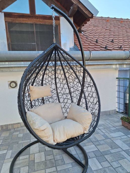 Prodajem visecu vrtnu stolicu, koristenu jednu sezonu. Stolica je prakticno nekoristena sto je ujedno i razlog prodaje. Uz nju dolazi sve sto je na slikama, baza, kosara i jastuci.