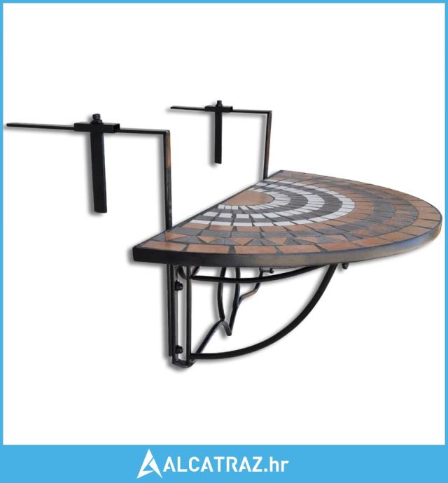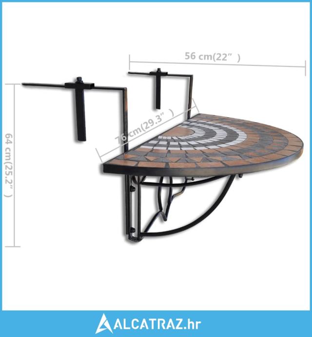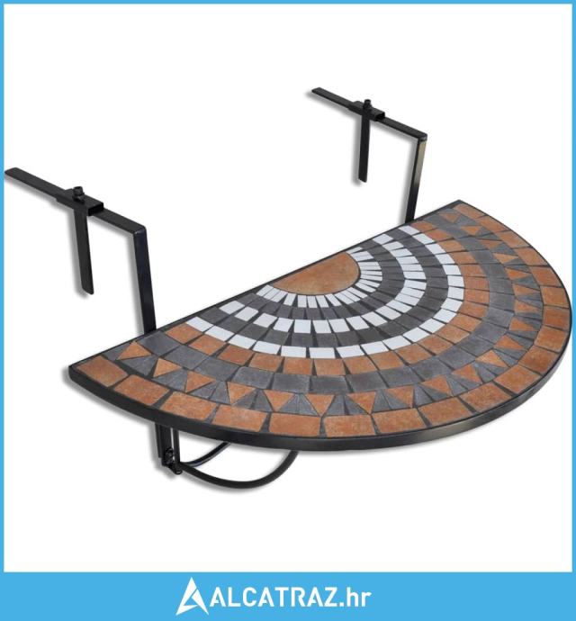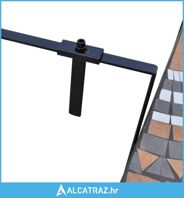 Željezni okvir doprinosi čvrstoći, dok je polukružna keramička stolna ploča također otporna na vremenske uvjete i lako se čisti. Ovaj balkonski stol može se pričvrstiti na bilo koju ogradu terase ili balkona do 18 cm širine. Može se lako sklopiti kad se ne upotrebljava, čime se štedi više prostora! Imajte na umu da ovaj proizvod nije prikladan za ostavljanje vani na hladnom vremenu.