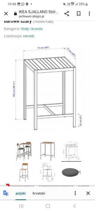 Stolice u ok stanju, drveni dio stola treba prefarbati kao sto se vidi na slici