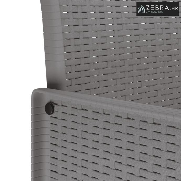 Poliratan izrada Cijeli set je izrađen od visokokvalitetnog poliratana, poznatog po svojoj izdržljivosti i sposobnosti da izdrži različite vremenske uvjete. Njegova moderna tekstura dodaje estetski dojam dok osigurava trajnost tijekom vanjskih sezona. Uključujući mat završne obrade, materijali nude sofisticirani neodsjaj koji besprijekorno nadopunjuje prirodno okruženje.