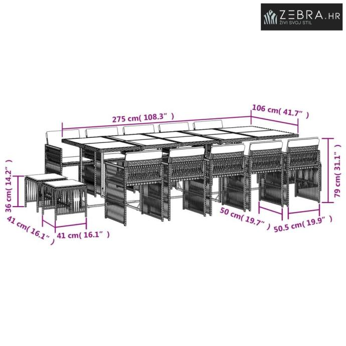 Vrtna garnitura - 15-dijelni vrtni blagovaonski set s jastucima svijet