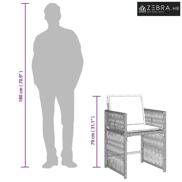 Materijal: Ratan od PE-a, čelik obložen prahom