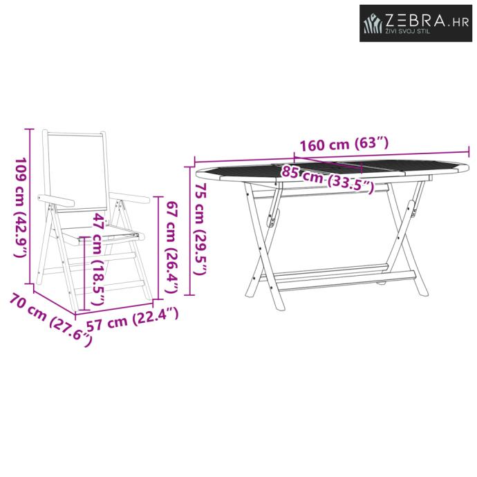 Građa od drva bagrema: Uživajte u robusnoj i izvanrednoj kvaliteti koju pruža čvrsto drvo bagrema, poznato po svojoj prirodnoj ljepoti i otpornosti. Prirodna UV otpornost drva osigurava dugovječnost protiv jakog sunca, čineći ga idealnim izborom za vanjske prostore. Ova izdržljivost garantira da vaša iskustva ručanja ostanu šarmantna i postojana kroz godišnja doba.
