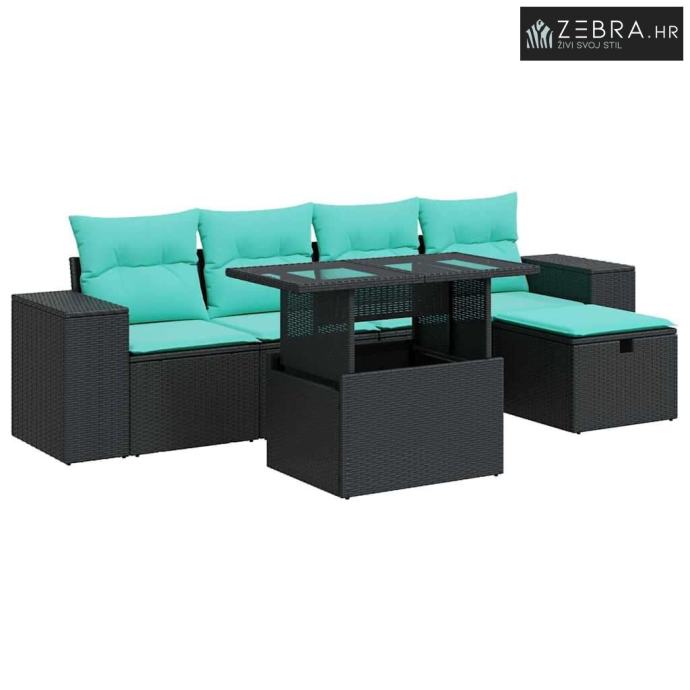 Vrtna garnitura - 6-dijelni set vrtnih sofa poliratan i bagrem s jastu