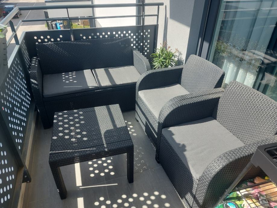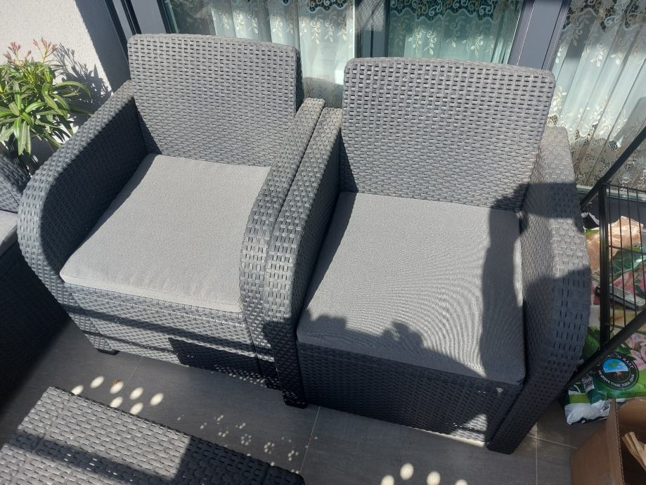 Prodaje se vrtna garnitura od ratana, antracit boje. Nova, stara pola godine skoro nekorištena. Novo kupljeno za 300eur, prodajem za 150 eur.