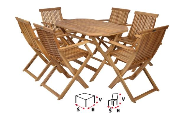 Osnovni set sa 6 stolica je vrtni namještaj izrađen od tvrdog bagremova drva.