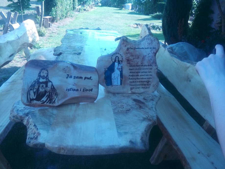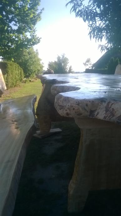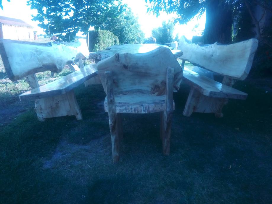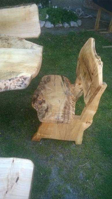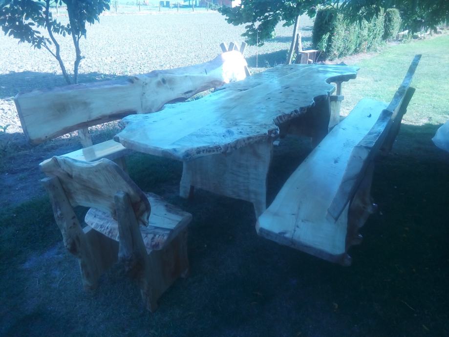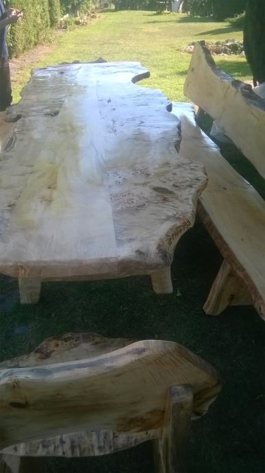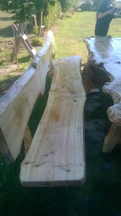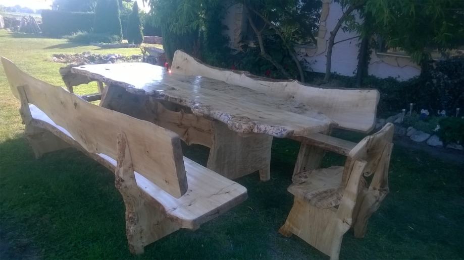 Vrtna garnitura od jagnjeda od punog drva koja uključuje stol, 2 klupe i 2 bočna stolca.